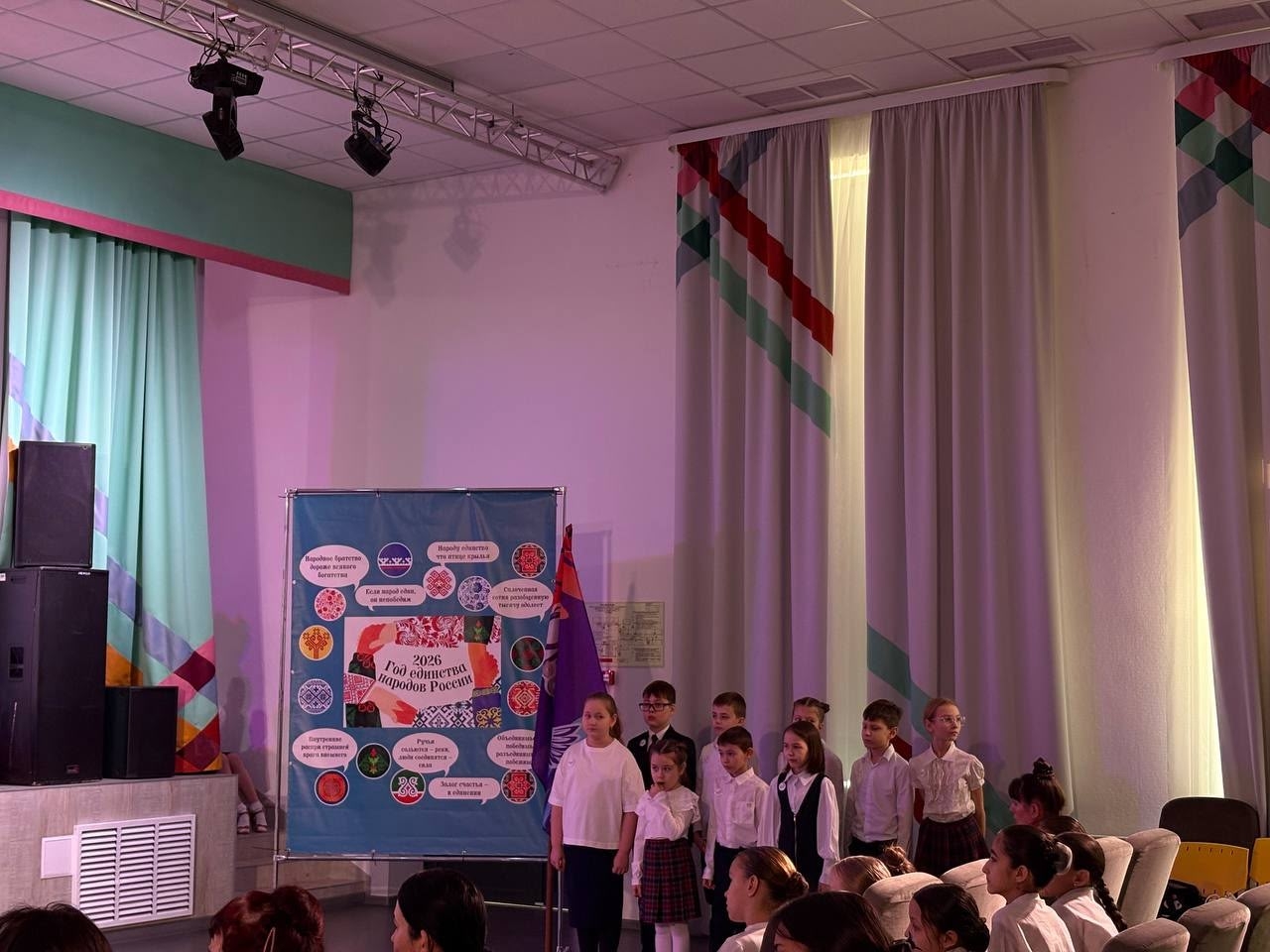 В соответствии с Указом Президента Российской Федерации от 25.12.2025 года № 962, с целью укрепления национального единства, мира и согласия между народами нашей страны, 2026 год объявлен Годом единства народов России. Сегодня в нашей школе прошло торжественное мероприятие, посвященное открытию Года единства народов России. Дан официальный старт мероприятиям, акциям, конкурсам под девизом «В единстве народов – сила России». |
