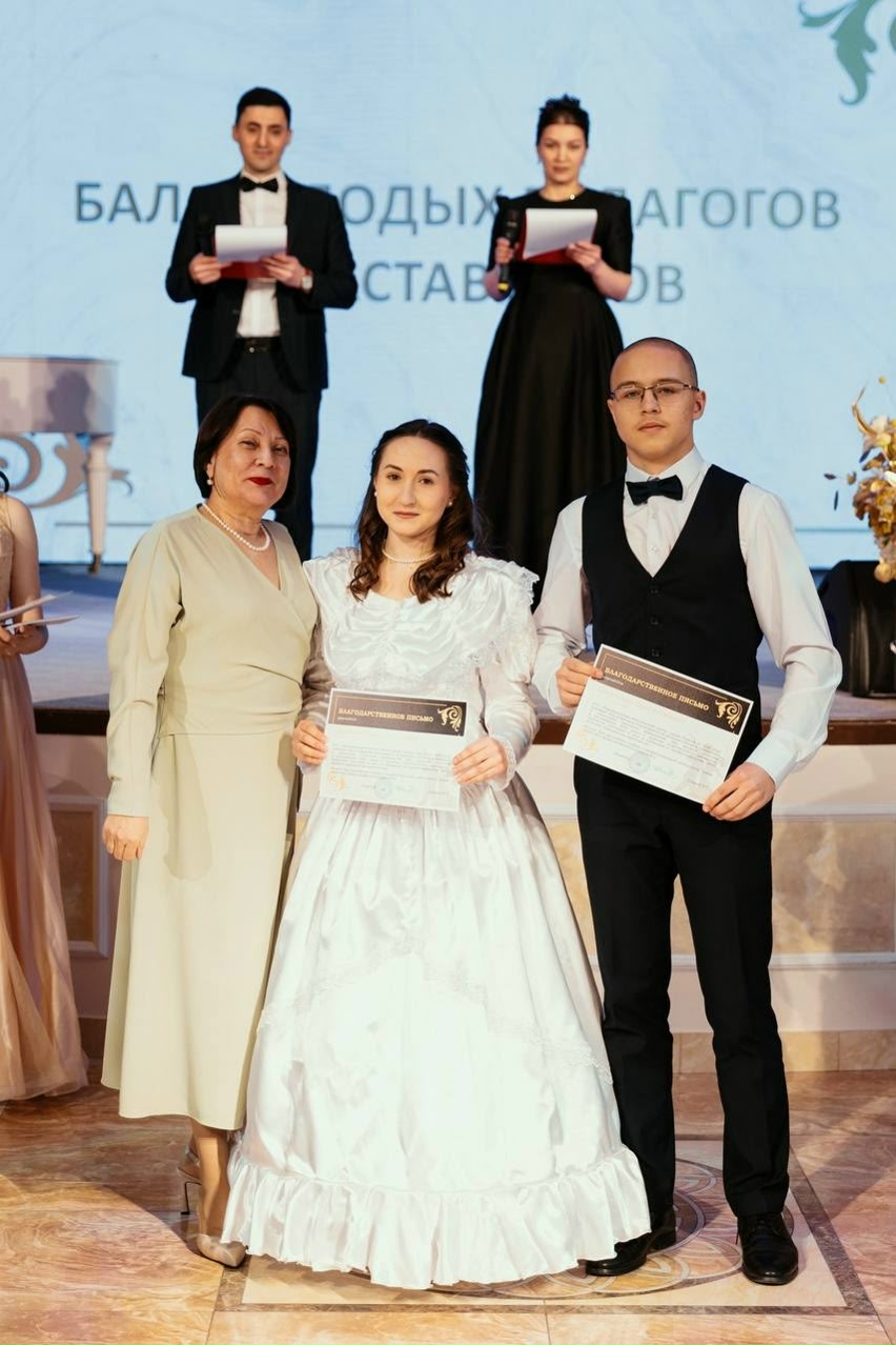В минувшую субботу во дворце культуры «Нефтяник» им. В.И. Муравленко прошёл бал молодых педагогов и наставников, в котором приняло участие 25 пар. МАОУ СОШ №52 представила учитель начальных классов Султанова Ильнара Раилевна. За два месяца репетиций были поставлены такие танцы как менуэт, полонез, вальс-миньон, падеграс, контрданс, бранль, падекатр, падепатинер и две игровые вариации. |